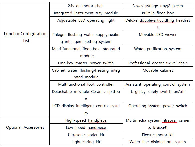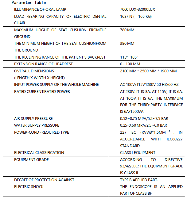 TECHNICAL PARAMETERS OF FUROI FR-3 SERIESDENTAL CHAIRS
